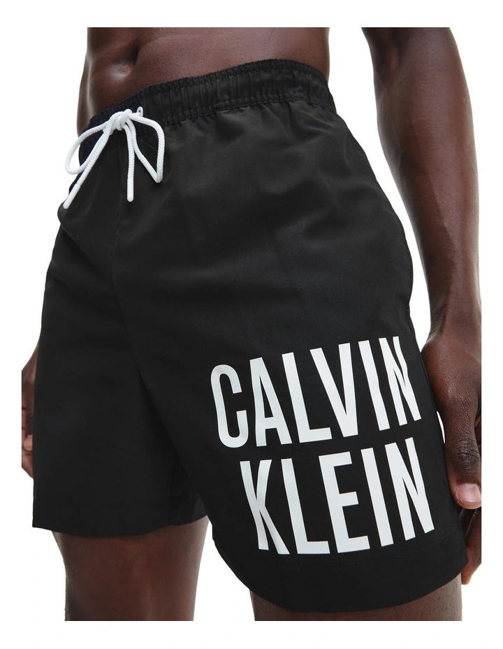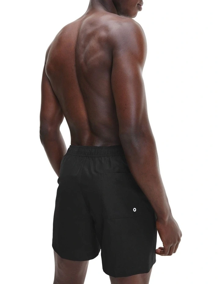 These recycled polyester swim shorts are cut for a medium length with a stretchy drawstring waist and multiple pockets. Accented by a Calvin Klein logo print to the leg.