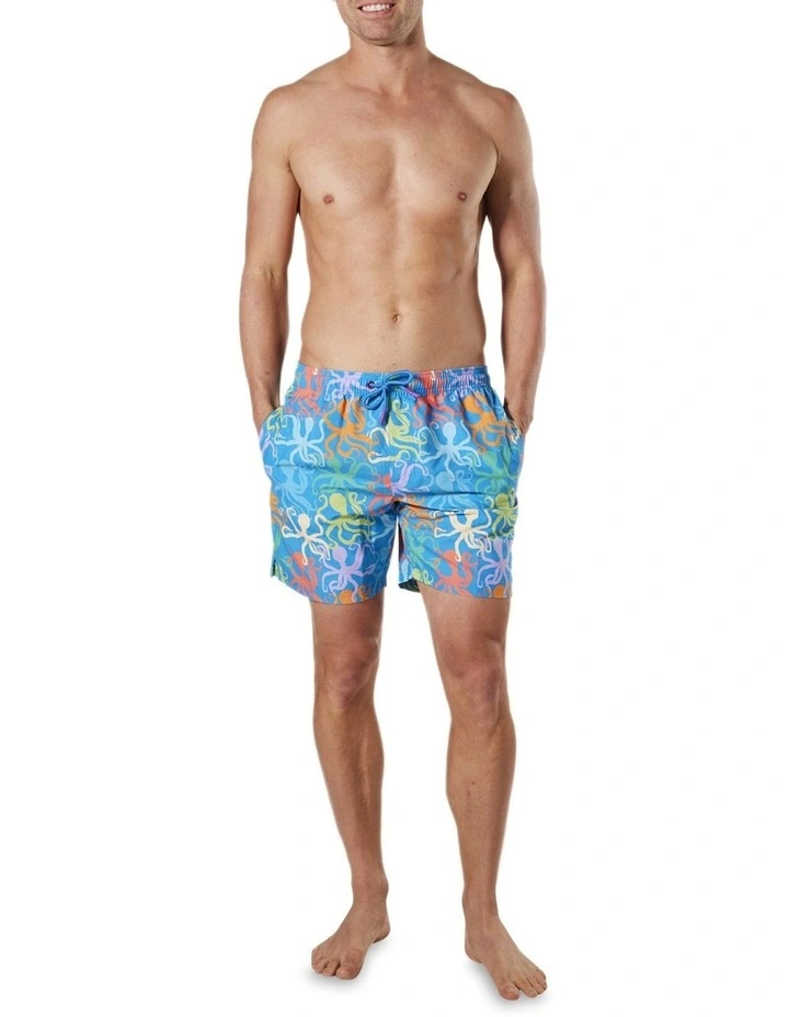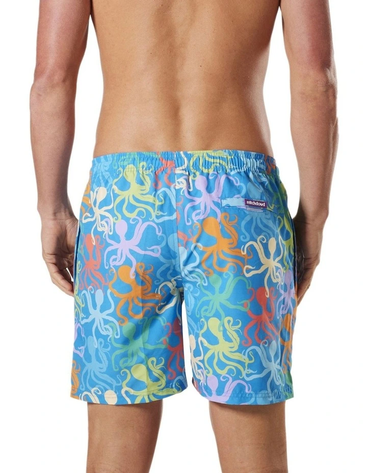 These stylish Mens Bright Octopus Swim Shorts printed swim shorts are perfect for summer. Crafted from 100% Recycled Repreve Polyester and featuring an all over design, fast-drying properties, mid-length leg, covered elastic waist with drawstring, two side pockets and a single back pocket with Velcro. These shorts are ideal for hot days by the pool or at the beach.